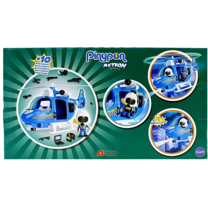 Las hélices del helicóptero se mueven de verdad, dispone de un compartimento en un lateral para guardar accesorios y tiene además un sistema de polea con enganche.