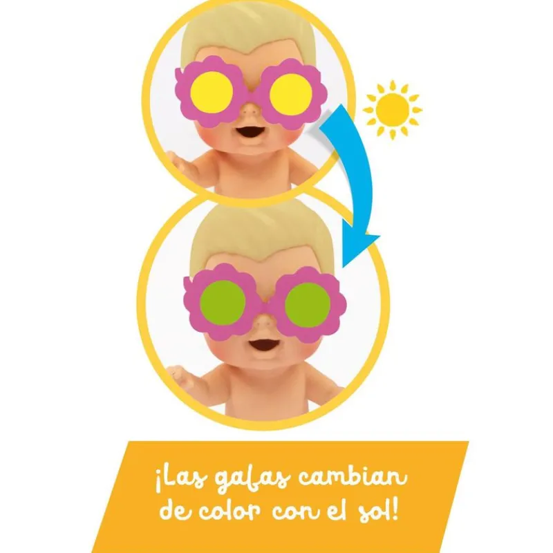 Muñeco bebé de la colección Amicicci Beach Time. Va vestido con un bañador de colores extraíble e intercambiable y unas gafas de sol divertidas. Contiene un accesorio de verano. Recomendado a partir de 3 años. EXISTEN MODELOS DIFERENTES. SE VENDEN POR SEPARADO. SE SURTIRÁN SEGÚN EXISTENCIAS. AL REALIZAR LA COMPRA, PUEDES RECIBIR CUALQUIER MODELO SURTIDO AL AZAR, INCLUIDOS MODELOS QUE NO SE ENCUENTREN EN LAS FOTOS. PRECIO POR UNIDAD