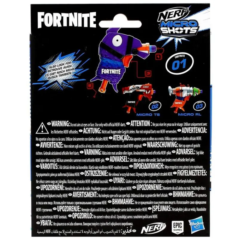 Pistola Nerf modelo microshots inspirada en el famoso videojuego Fortnite.