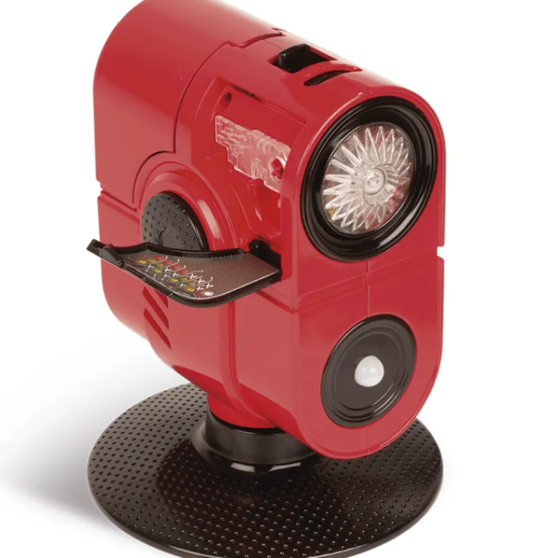 Juego de mesa con el que tendrás que convertirte en un verdadero espía. El objetivo del juego es conseguir desconectar la cámara sin que te detecte. Coloca la cámara y acércate a ella para desconectarla con cuidado ¡Si la cámara te detecta 2 veces habrás perdido! Una vez consigas acercarte a la cámara dispondrás de 20 segundos para descubrir la combinación correcta de cables y desconectarlos. Funciona con 3 pilas AA NO incluidas. Recomendado a partir de 6 años.