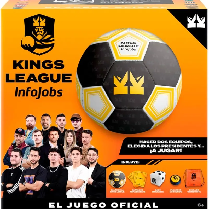 Formad dos equipos, elegid a vuestro presidente y a jugar. Todo lo que necesitar para jugar al futbol igual que en la Kings League. Incluye el balón oficial, el pulsador que activa las armas secretas y las cartas de presidente. Tira el dado inflable para que decida con cuántos jugadores os quedaréis. Llévalo en la bolsa de la Kings League para jugar en cualquier lugar. Recomendado a partir de 6 años.