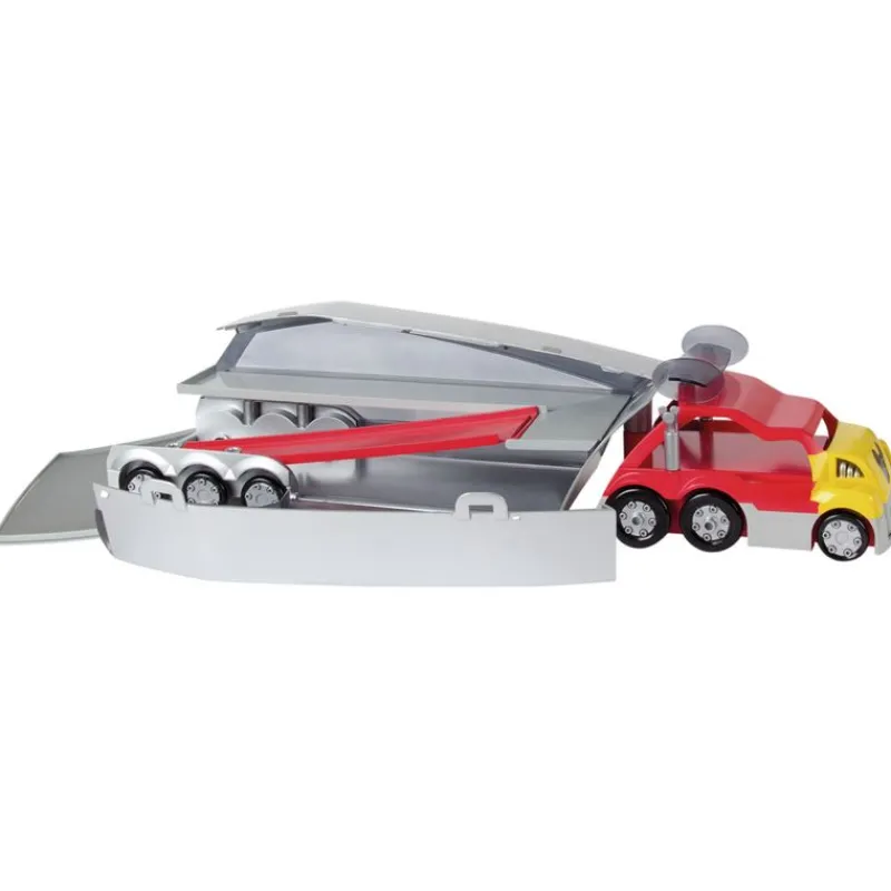 Camión bólido rodador inspirado en la divertida serie de animación ‘Mickey y los Superpilotos’ ¡Abre el lateral y su parte trasera! En su interior podrás guardar hasta 14 vehículos de la colección. Contiene una increíble rampa para que puedas lanzar tus coches a toda velocidad. Incluye el bólido de tu ratoncito favorito, Mickey Mouse. Tiene un tamaño de 50 cm aproximadamente. Recomendado a partir de 3 años.