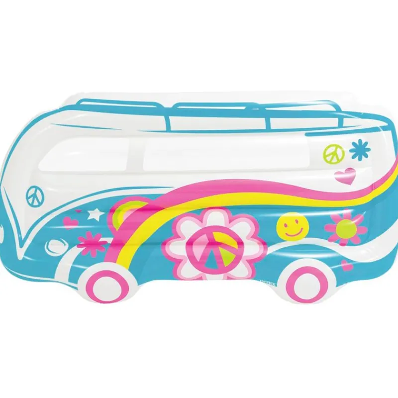 Colchoneta para la playa con diseño inspirado en una colorida furgoneta. Sus dimensiones son de 178 cm x 23 cm x 91 cm aproximadamente. Fabricada en PVC soporta un peso máximo de 100 kg. Recomendado a partir de 9 años.