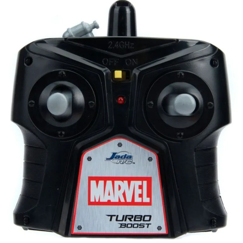 Vehículo Ford GT 2017 inspirado en tu superhéroe favorito, el increíble Spider-man. Tiene una escala de 1:16. Es un vehículo multidireccional con función turbo. Su mando tiene un alcance de 2.4 Ghz. Podrás cargarlo gracias a la batería que incluye y su USB. El mando funciona con pilas NO incluidas. Sus dimensiones son de 49 cm x 37 cm x 18 cm aproximadamente. Recomendado a partir de 6 años.