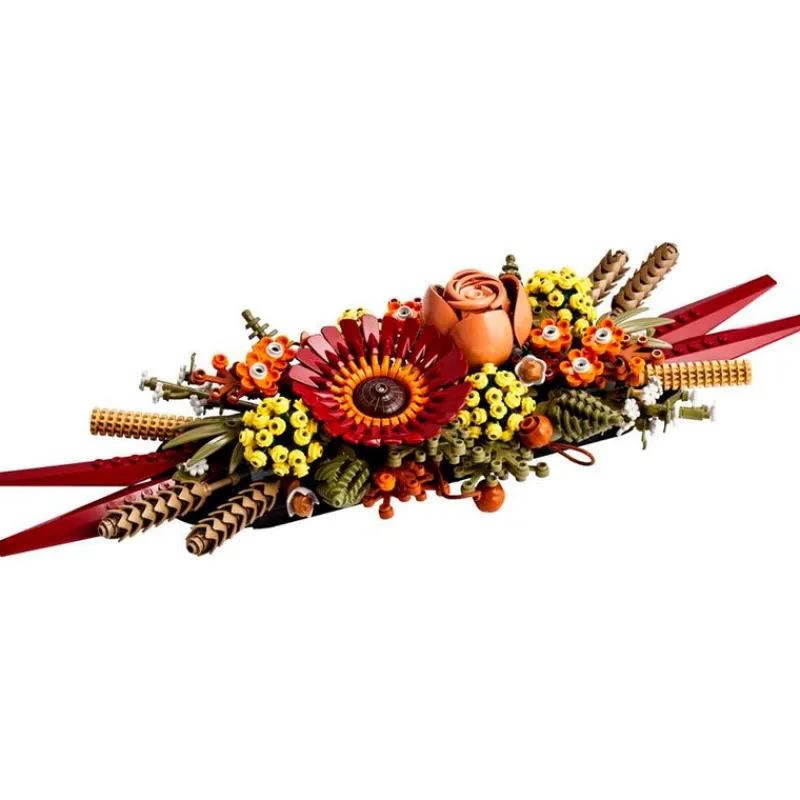 Pack de la colección LEGO Icons, compuesto de 812 piezas, con las que podrás construir un centro de flores secas. Este kit está compuesto de vibrantes flores inspiradas en los colores del otoño e incluye una gerbera y una rosa como elementos focales de la composición. Sus dimensiones son de 7 cm de alto x 40 cm de ancho x 13 cm de profundidad. Recomendado a partir de 18 años.