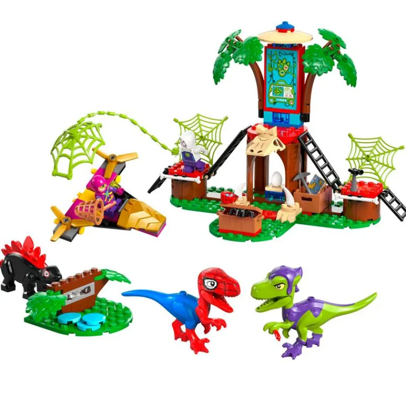 Pack de la colección LEGO Marvel, compuesto de 143 piezas, con las que podrás construir el playset de Spidey y Gobby: Batalla de Raptores en la Base de la Casa del Árbol.