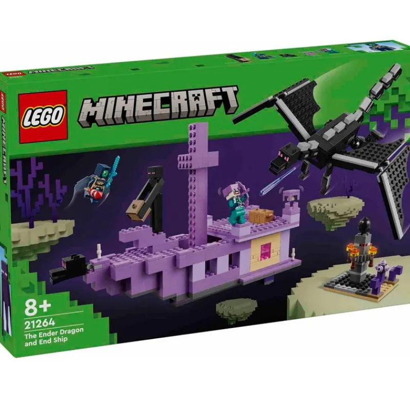 Pack de la colección Lego Minecraft, compuesto de 657 piezas, con las que podrás construir el Dragón Ender y el Barco del End. Todas las extremidades del Dragón son móviles y ajustables. El Barco está totalmente equipado, desmonta el techo y abre los laterales para acceder fácilmente. Usa la cabeza de casco, coge la cabeza del dragón del barco para usarlas como casco. Prepara una poción mágica, mira todas las pociones de salud del soporte para pociones. En el interior encontrarás la mini figura del Caballero del Ender con élitros y cohete de fuegos artificiales. El huevo de dragón es una de las posesiones más preciadas. Recomendado a partir de 8 años.