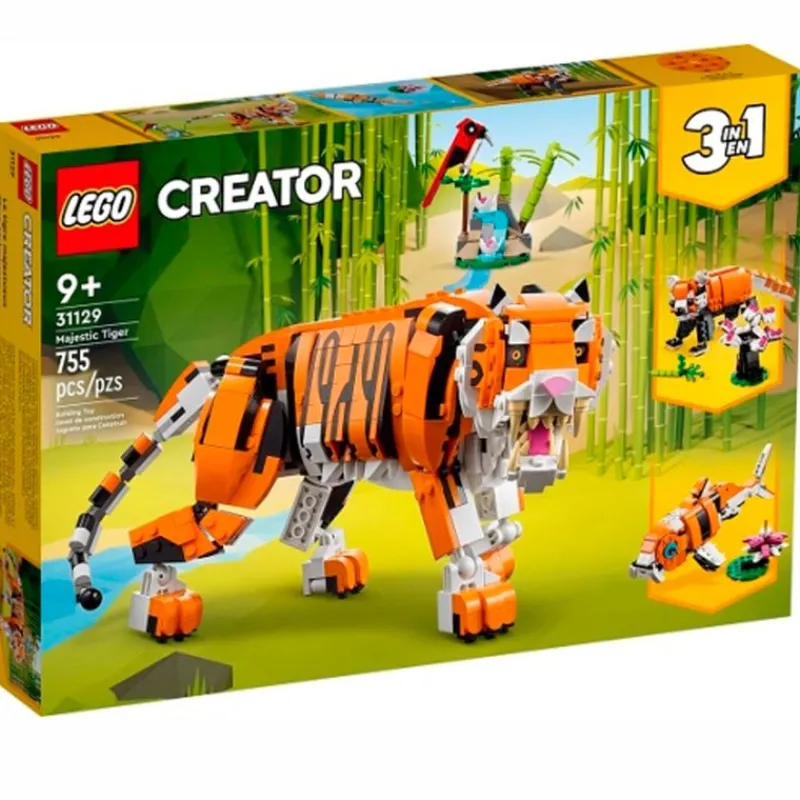 Pack de la colección LEGO Creator, compuesto de 755 piezas, con las que podrás construir un majestuoso tigre. Dispone de articulaciones en cabeza, mandíbula, cola, patas y los hombros. También podrás construir un panda rojo y una carpa koi. Recomendado a partir de 9 años.