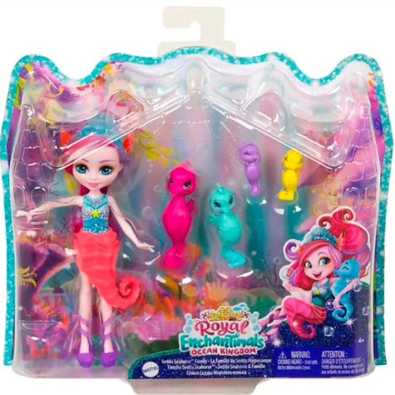 Pack de la colección Enchantimals Royal Ocean Kingdom en el que encontrarás la muñeca de Sedda Sea acompañada de 3 caballitos de mar. Recomendado a partir de 4 años.