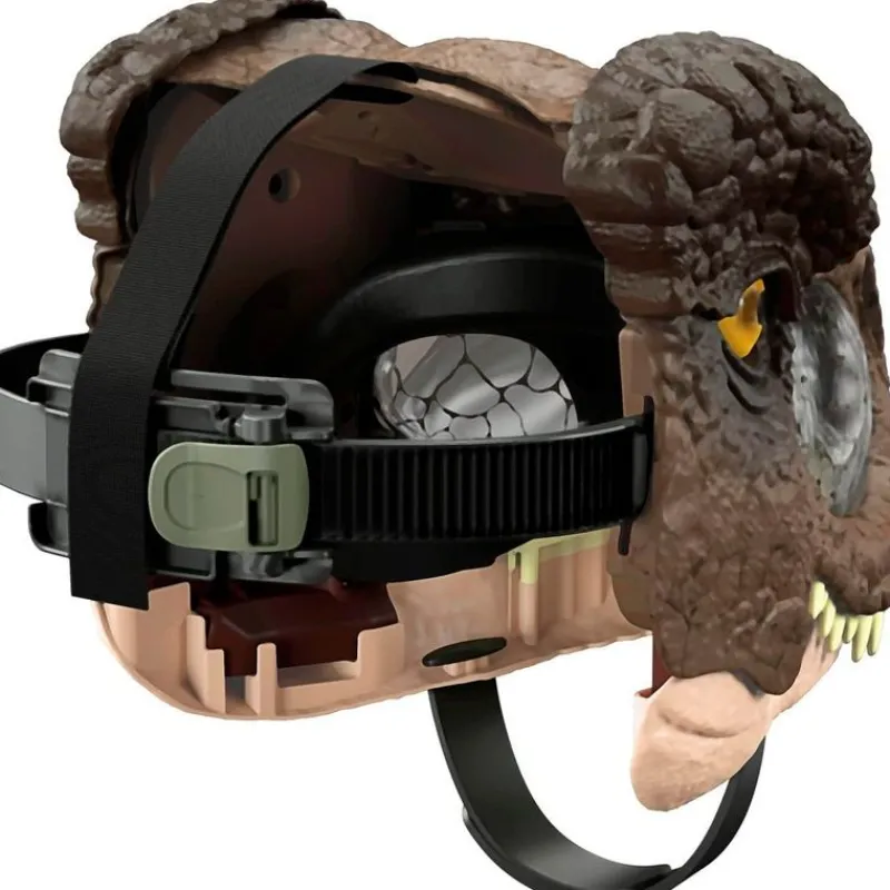 Recrea tus escenas favoritas de las películas de Jurassic World con esta detallada máscara de T-Rex ¡Con detalles realistas! La textura, el color de la piel, los dientes y las cejas que se mueven cuando más se enfada. Al tratarse de una máscara electrónica emite sonidos a medida que aumenta el ángulo de apertura de la mandíbula. Con correa de sujeción que se ajusta a la cabeza cómodamente. Dispone de agujeros en los ojos y la nariz para asegurar una buena visión. Funciona con 3 pilas LR44 incluidas (pilas de demostración). Recomendado a partir de 3 años.