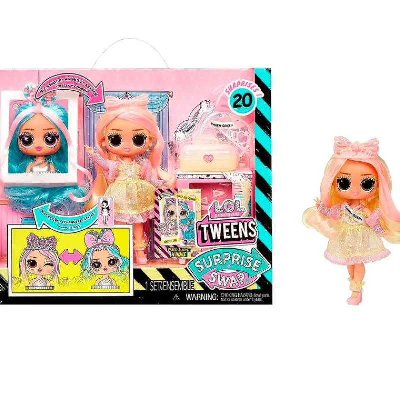 Muñeca de la colección LOL Surprise Tweens Swap ¡Podrás cambiar tu aspecto completamente! La muñeca viene acompañada de 2 looks diferentes y una función de cabeza intercambiable ¡Contiene más de 20 sorpresas! Recomendado a partir de 3 años.