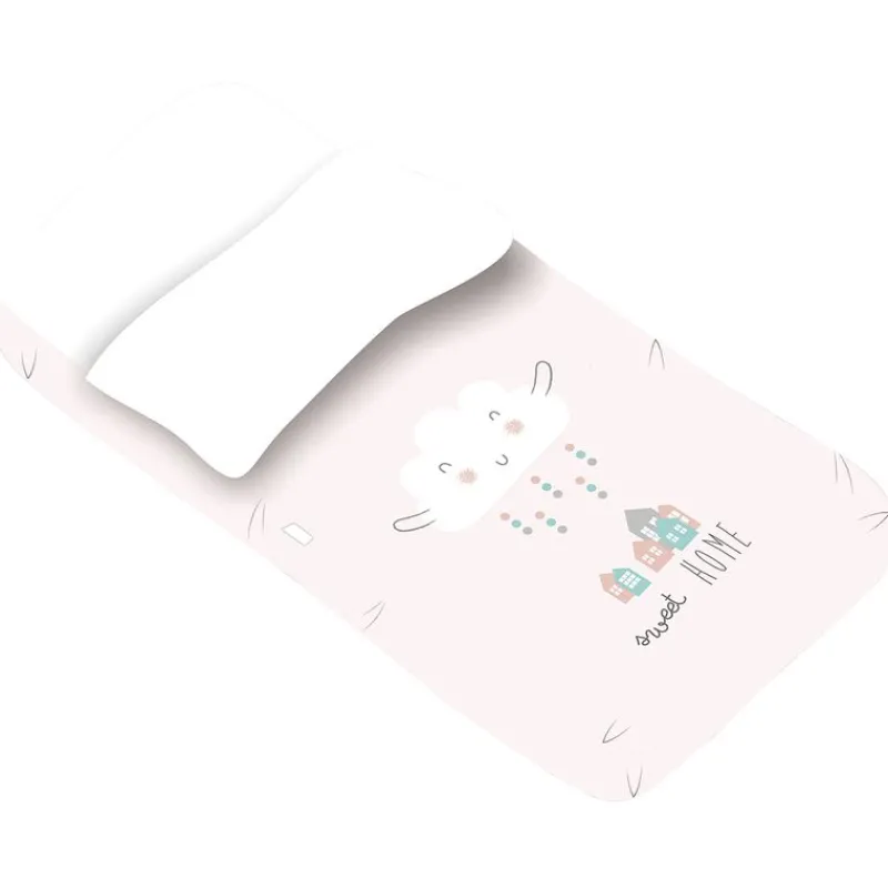El saco se compone de una sábana bajera ajustable con goma que está unida mediante cremallera a la parte superior. La parte superior incluye el relleno para invierno que a su vez es extraíble para poder utilizarlo durante todo el año.