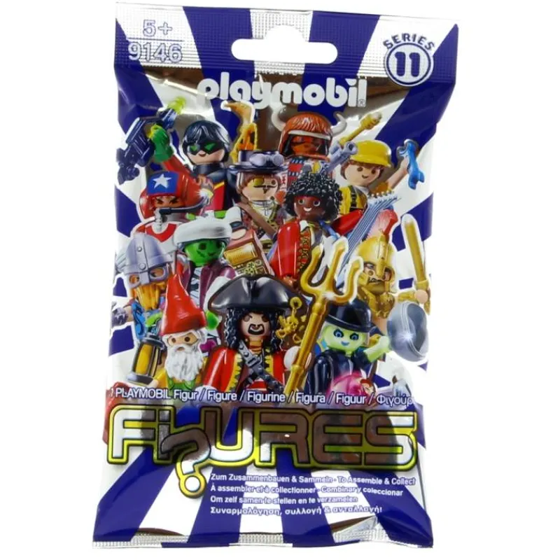 Sobre sorpresa con una figura Playmobil de la serie 11. Las figuras se desmontan cabeza, cuerpo, piernas para hacer miles de combinaciones.