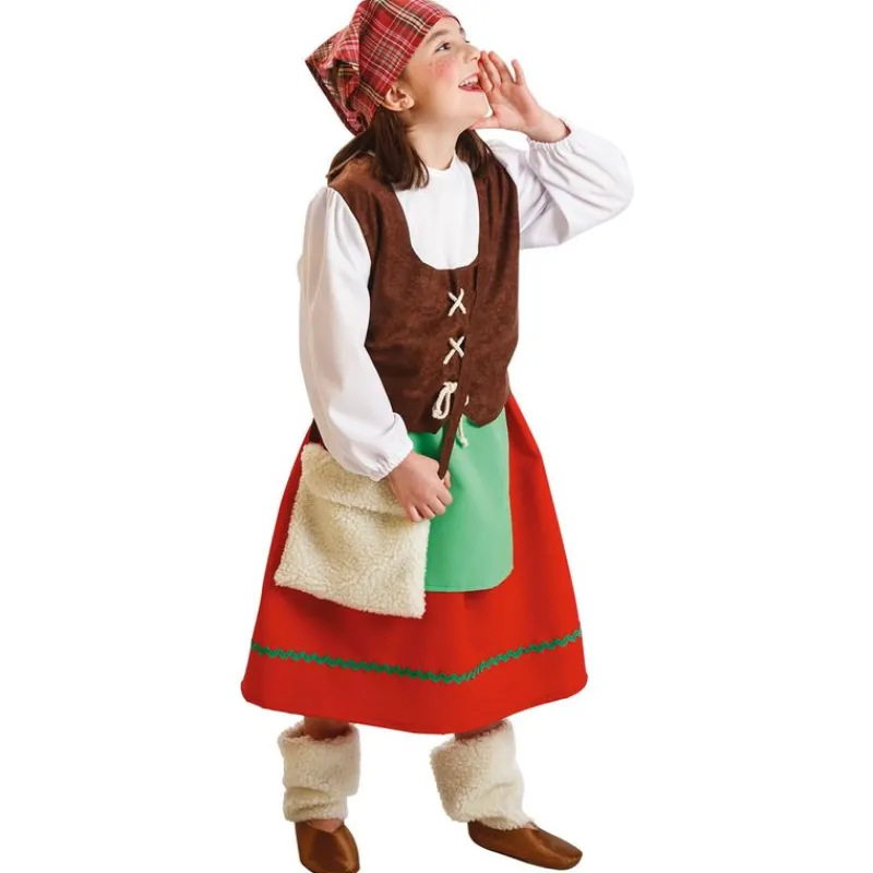 ¡Prepárate para celebrar la navidad! Disfraz de Pastora compuesto de cuerpo con mangas, falda, pañuelo, calzas y zurrón. NO incluye calzado. Talla 3-5 años aproximadamente (Espalda: 30 cm Pecho: 68 cm Cintura: 64 cm Manga: 36 cm Largo Pantalón: 63 cm).