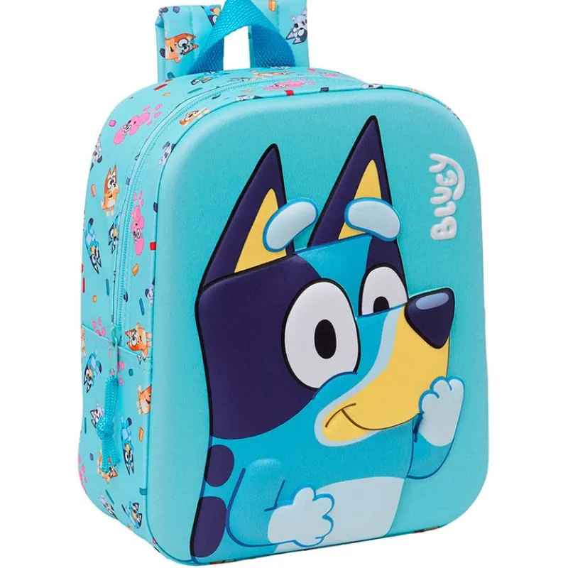 Mochila para guardería con diseños 3D inspirada en la serie de animación Bluey.