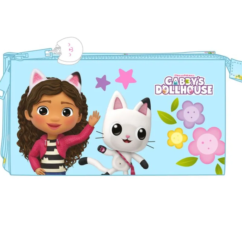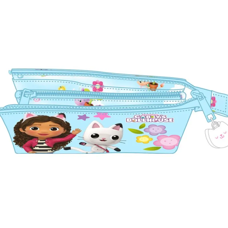 Portatodo triple con diseños inspirados en la serie de animación la Casa de Muñecas de Gabby. Sus dimensiones son de 12 cm x 22 cm x 3 cm aproximadamente.