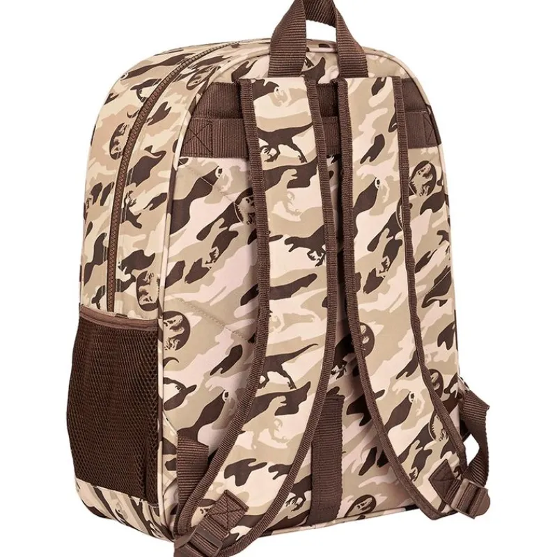 Mochila escolar con diseños inspirados en la película Jurassic World Dominion. Dispone de 2 compartimentos, de diferente tamaño, para que puedas guardar en el interior tus libros y accesorios escolares. Dispone de bolsillo lateral portabotellas. Con hombreras y espaldas ergonómicas y acolchadas. Asa de mano en la parte superior. Adaptable para carro (NO incluido). Sus dimensiones son de 33 cm x 14 cm x 42 cm aproximadamente.