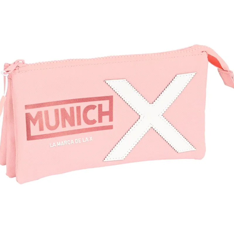 Portatodo de la colección Munich con tres compartimentos para organizar tus accesorios escolares. Sus dimensiones son de 22 cm x 3 cm x 12 cm aproximadamente.