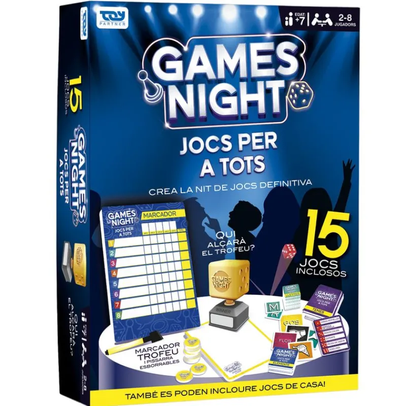 Game Night es un juego de mesa para toda la familia en el que podrás jugar los 15 juegos que incluye como The Name Game, Quick Draw, World Watch, Dice Be Nice o In or Out. De 2 a 8 jugadores. Recomendado a partir de 7 años.