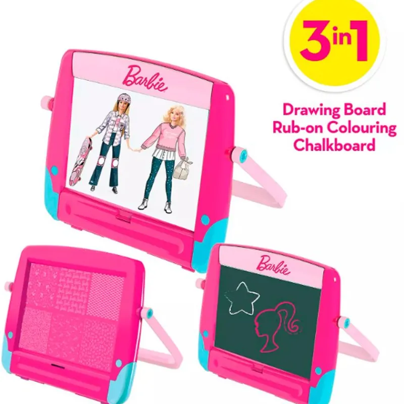 Pizarra 3 en 1 con diseños inspirados en tu muñeca favorita, Barbie.