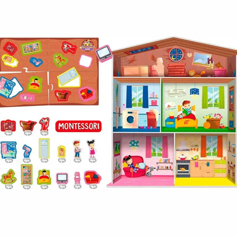 Monta una casa 3D inspirada por el método Montessori. En el interior encontrarás los diferentes accesorios con los que poder decorarla. Ideal para la memoria táctil, concentración, autonomía, motricidad fina y coordinación mano-ojo. Recomendado a partir de 3 años.