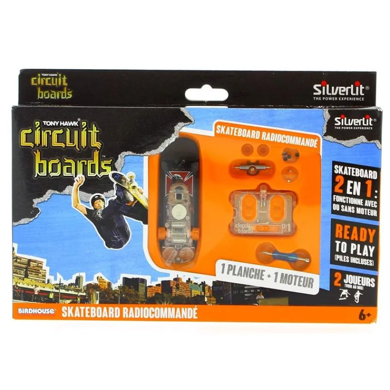Monopatín radiocontrol con el diseño de un halcón con una cruz roja en la parte posterior y un fondo negro, pertenece a la colección de Tony Hawk. Dispone de 2 modos de juego, el teledirigido con el que podrás utilizar el mando que incluye o el manual, en el que puedes utilizarlo como un monopatín de dedos normal. Incluye la carcasa de la tabla, 4 ruedas y las herramientas necesarias para montarla. Funciona con 3 pilas LR44 incluidas (pilas de demostración) y el mando con 2 pilas LR44 incluidas (pilas de demostración). Recomendado a partir de 6 años.
