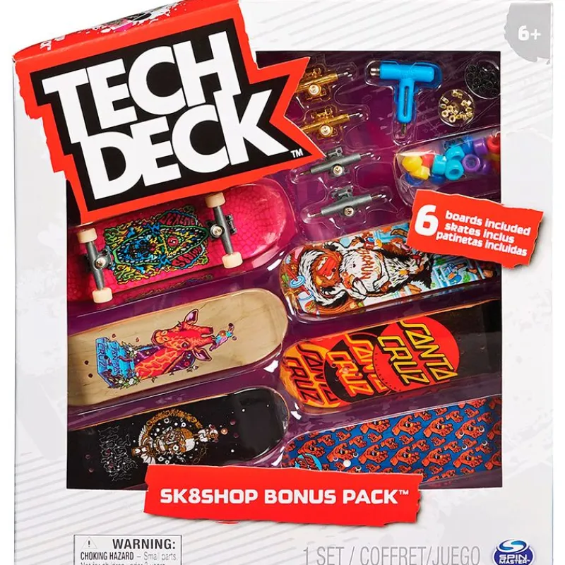 Pack de la colección Tech Deck en el que encontrarás 6 monopatines personalizables. En el interior contiene todo lo necesario para comenzar: una tabla completamente montada, 5 tablas con cinta antideslizante, 2 hojas de calcomanías, 20 ruedas, una herramienta, 4 ejes de patinete, 26 tornillas y 14 tuercas. Recomendado a partir de 6 años. EXISTEN MODELOS DIFERENTES. SE VENDEN POR SEPARADO. SE SURTIRÁN SEGÚN EXISTENCIAS. AL REALIZAR LA COMPRA, PUEDES RECIBIR CUALQUIER MODELO SURTIDO AL AZAR, INCLUIDOS MODELOS QUE NO SE ENCUENTREN EN LAS FOTOS. PRECIO POR UNIDAD.