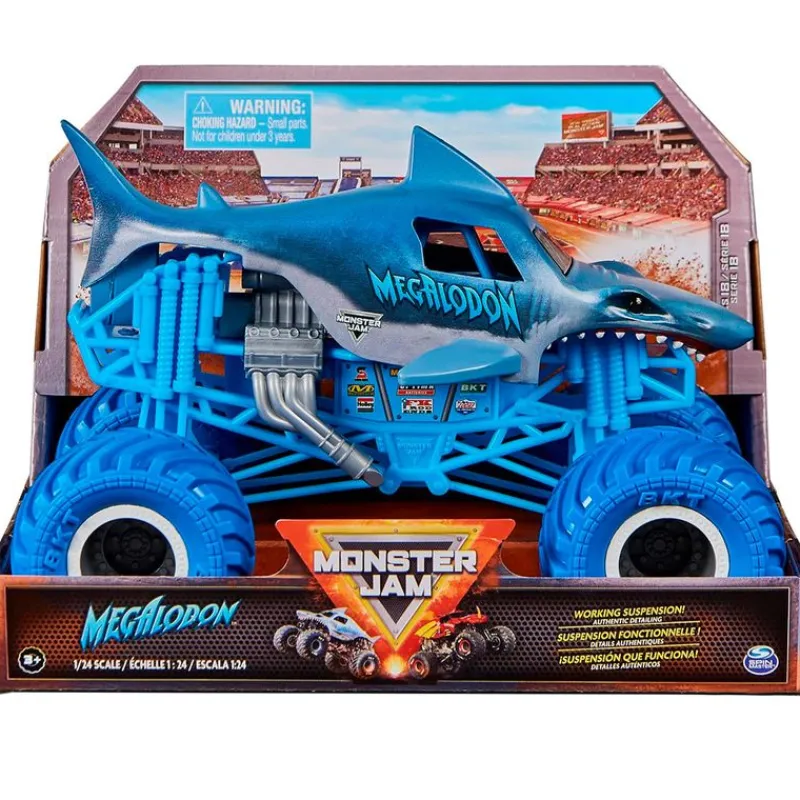 Camión Monster Jam a escala 1:24, con neumáticos BKT oficiales, los elegantes bordes cromados y un chasis auténtico con acabados en croma. Recomendado a partir de 3 años.