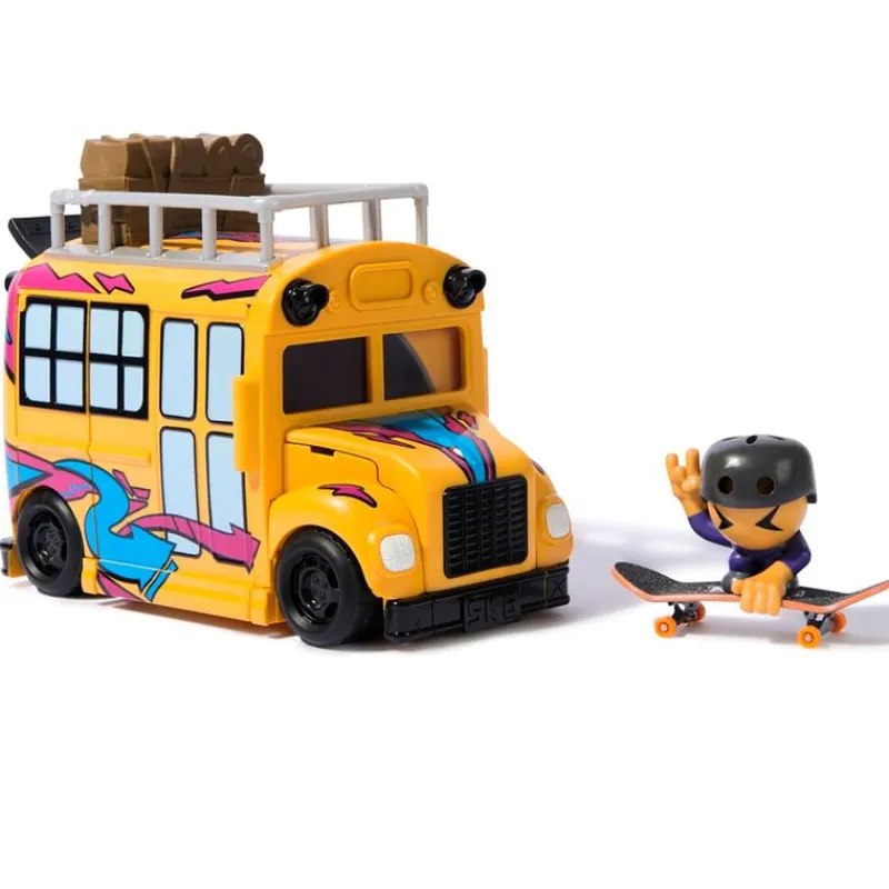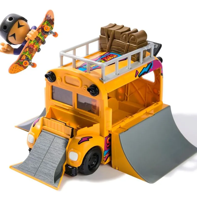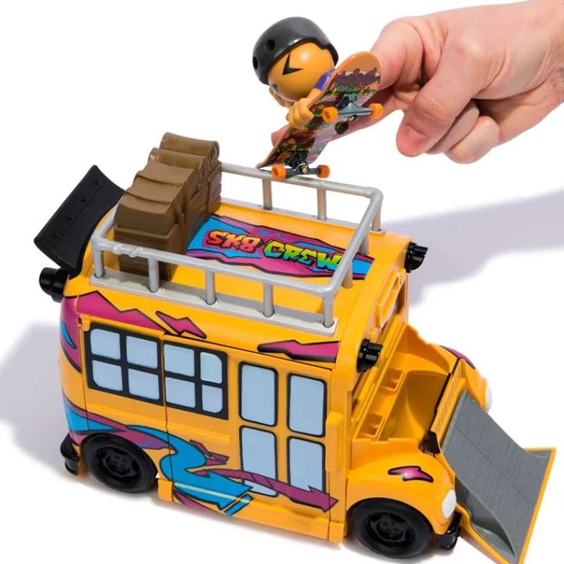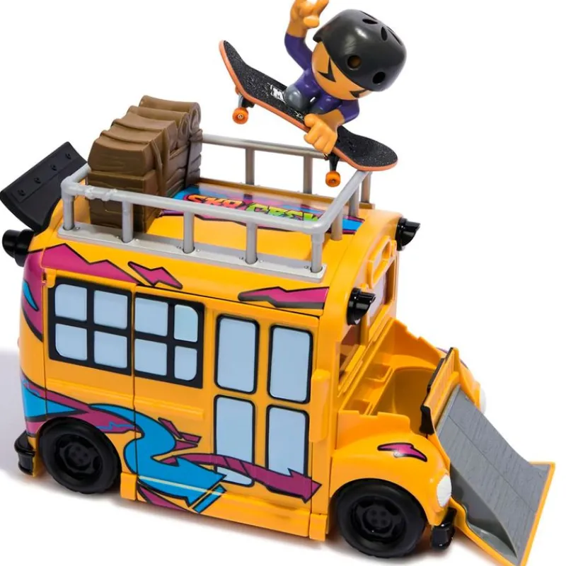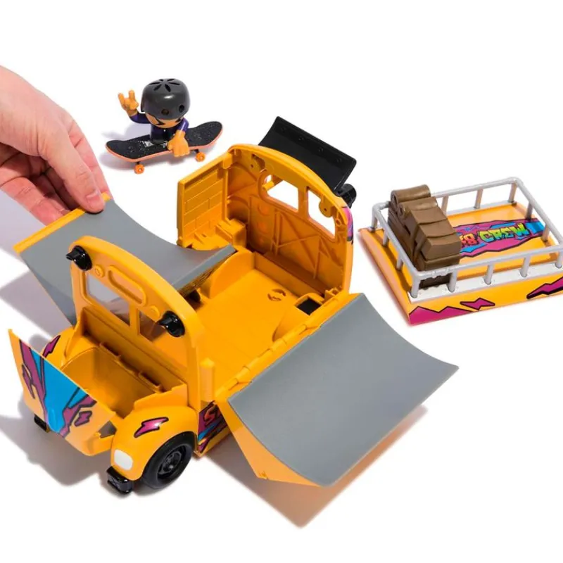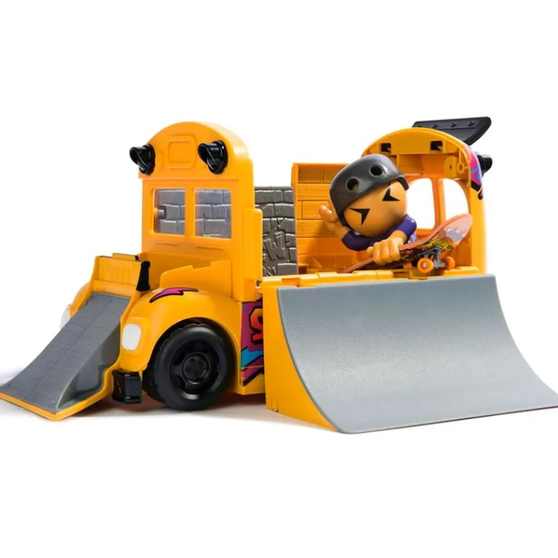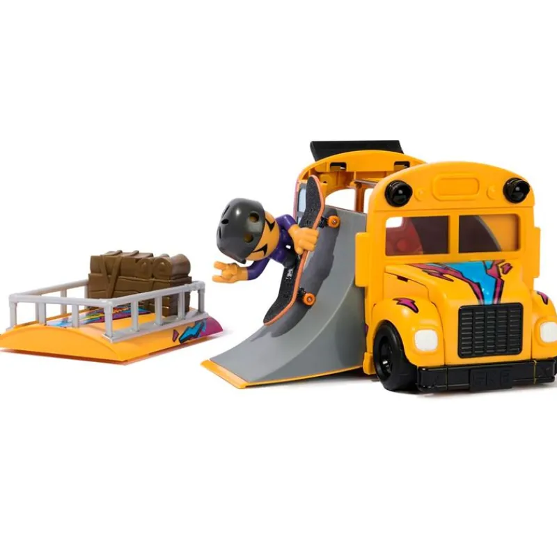 Abre el autobús y descubre un entorno de skate completo con rampas listas para la acción.