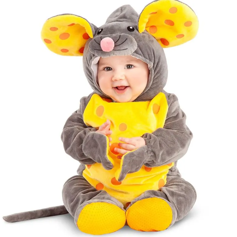 Se compone de un gorro con la cara del ratón y un mono con patucos.