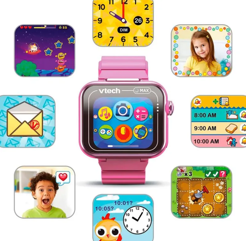 10.Podómetro 11.Juegos para practicar ejercicio 12.Sound shakers (agitando el reloj te dirá la hora) 13.Puzle solver (más activo y con más piezas hasta 20 y cuando se acaba el puzle con un toque salta de manera automática a otro puzle). 14. Función de comunicación con otros relojes para jugar 15.Descargas de juegos 16.Enseña la hora y consta de aplicaciones que enseñan el concepto del tiempo 17.Dibujo libre 18.Diseño de carátulas de fotos 19.Alarma 20.Agenda 21.Cronómetro 22.Temporizador 23.Calendario 24.Ajustes: All Ring Off, Control parental, color de fondo, apagado automático, despertador, resolución vídeo, memoria, idioma, volumen, fecha, volumen, brillo. Cable USB para cargar el reloj y transferir datos. Recomendado a partir de 4 años.
