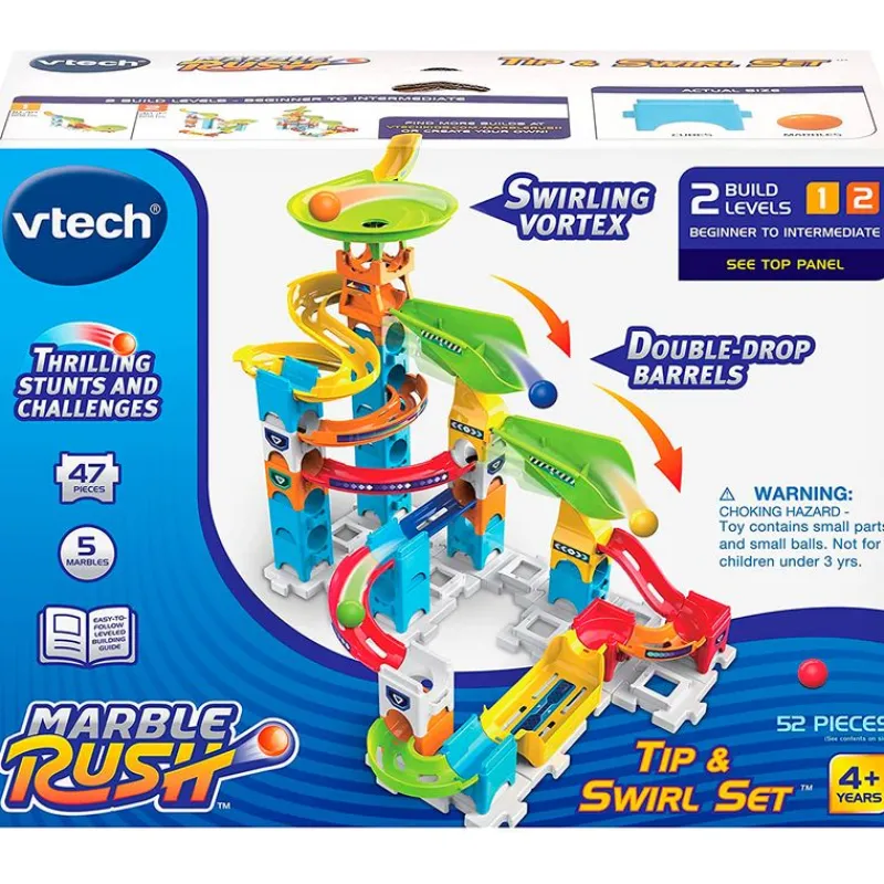 Circuito de canicas interactivo con el que los más pequeños de la casa podrán dejar volar su imaginación y crear divertidos circuitos donde circularán, desafiando todo tipo de bajadas, curvas y lanzamientos. Las canicas activan sonidos y luces al pasar por diferentes sensores, con lanzadores para enviar las canicas a distintos escenarios y realizar acrobacias espectaculares, con construcción codificada por colores, numerosos pasajes secretos, interruptores y áreas de interacción. Dispone de 3 niveles de dificultad diferentes. Contiene 62 piezas y 5 canicas incluidas. Compatible con el resto de playsets de la colección. Sus dimensiones son de 34 cm x 42 cm x 34 cm aproximadamente. Recomendado a partir de 4 años.
