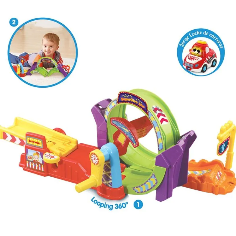 Playset interactivo de la colección Tut Tut Bólidos con el que podrás realizar una carrera de 360 grados.