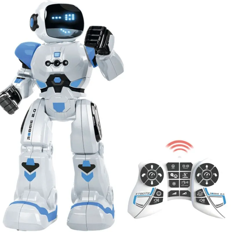 Controla a Robbie 2.0 con el mando o con tus gestos gracias a su Smart Control. Programable hasta 50 movimientos. Movimientos direccionales, velocidad, modo baile y ajuste de volumen. Diferentes expresiones faciales a través de sus 26 LED azules. Con batería recargable y cable USB incluido. Recomendado a partir de 5 años.