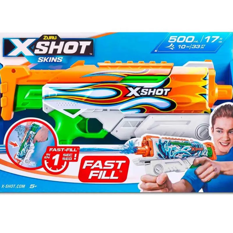 Pistola de la colección XShot con tecnología Fast-Fill que te permitirá rellenar en un segundo y volver a jugar rápidamente. Su depósito tiene una capacidad de 500 ml. Tiene un alcance de 10 m. Recomendado a partir de 5 años. EXISTEN MODELOS DIFERENTES. SE VENDEN POR SEPARADO. SE SURTIRÁN SEGÚN EXISTENCIAS. AL REALIZAR LA COMPRA, PUEDES RECIBIR CUALQUIER MODELO SURTIDO AL AZAR, INCLUIDOS MODELOS QUE NO SE ENCUENTREN EN LAS FOTOS. PRECIO POR UNIDAD